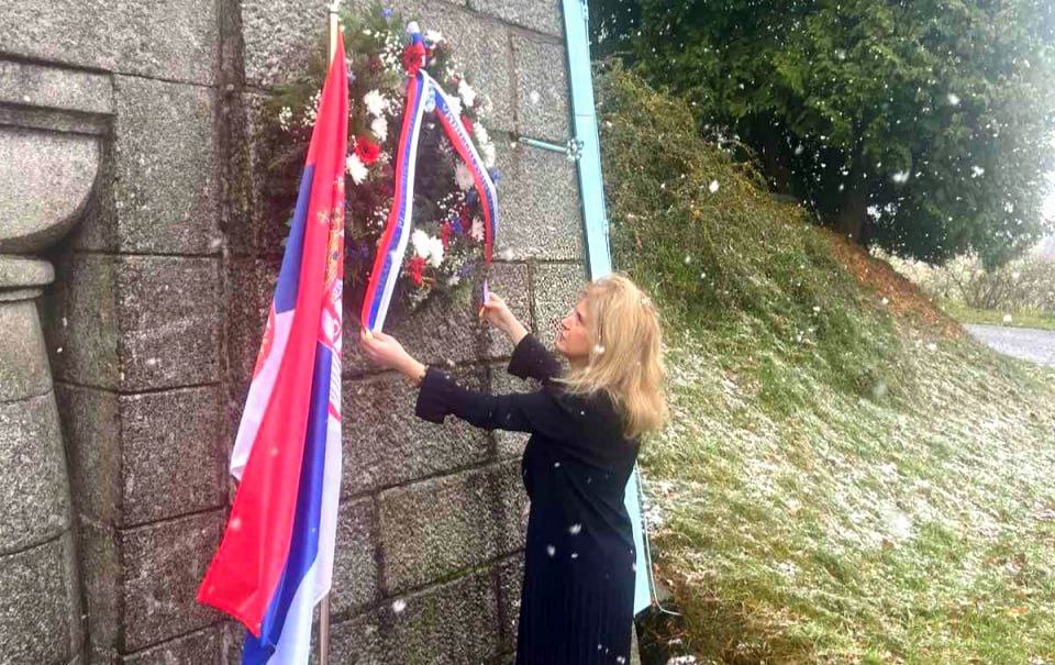 Министар-саветник Лeпша Штулић је положила венац у знак пијетета према страдилим сународницима и заједно са чуваром Маузолеја Дејаном Ранђеловићем одала почаст нашим вечитим херојима.