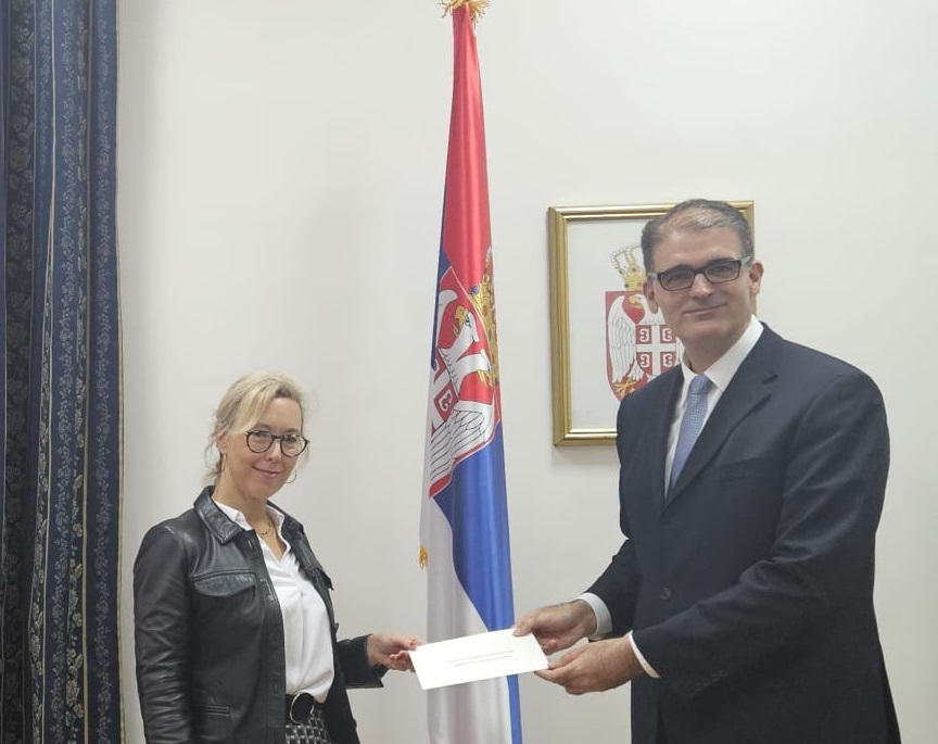 Le 29 septembre 2025, la nouvelle Ambassadrice désignée de France, Mme Florence Ferrari, a remis les copies figurées de ses lettres de créance à M. Branko Radovanović, Chef du Protocole diplomatique au ministère serbe des Affaires étrangères.